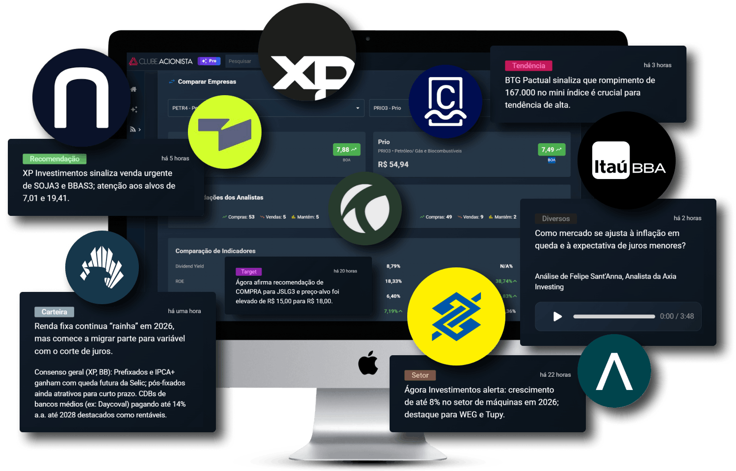 O Clube Acionista é um site com conteúdos exclusivos sobre investimentos. Por aqui, apuramos a movimentação das empresas alvos de investimentos e averiguamos a visão dos principais analistas de bancos, corretoras e gestoras sobre elas. Tudo para que você precisa saber para tomar a direção mais segura na hora de investir.